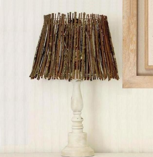 От малки клонки и винени тапи може да се създаде стилен абажур, като се използва техниката на изрязване върху картон или плат. Важно е готовият продукт да се вписва в интериорния дизайн и да се превърне в ярък акцент в интериора, който да резонира с други дизайнерски детайли.