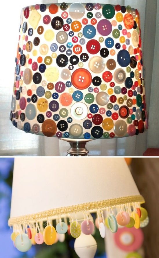 Можете също така да използвате комбинация от техники за декорация, да боядисате плата и да прикрепите към него мъниста или перли. Цветята от панделки и висулки от конци, плетените абажури с подплата от плат за детската стая и сгънатите дизайни с гънки от плат изглеждат оригинално.