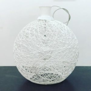 - Върху слоя лепило се нанасят цветни или едноцветни вълнени конци или може да се използва тънко парче канап;