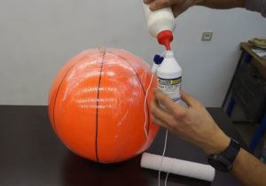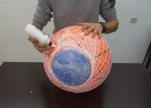 - Избраната основа, в повечето случаи вече надут балон или каквато и да е топка, се покрива с фолио и тънък слой лепило PVA;