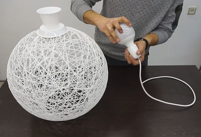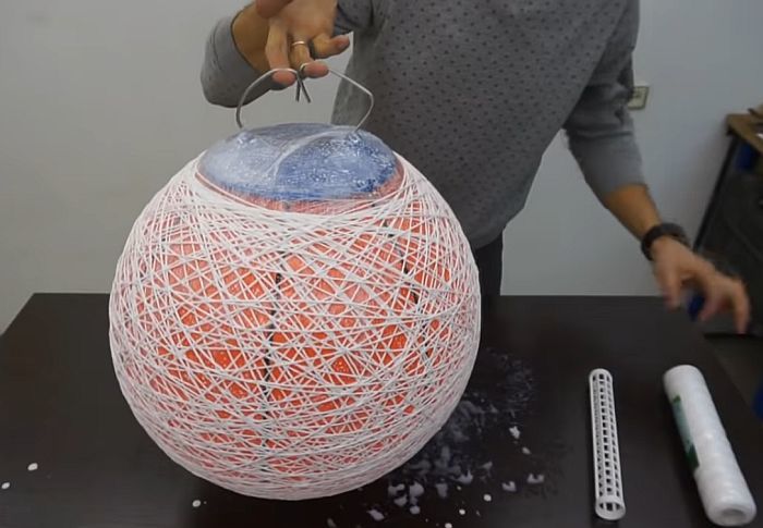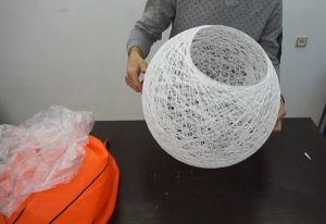 - Когато абажурът е готов, внимателно пробийте балона и го извадете, след което го украсете.