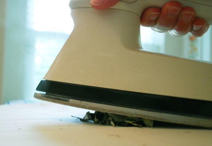 Ако това са малки храстови листа, те се залепват върху подготвения шаблон по същия начин, по който се прави апликацията за откъсване.
