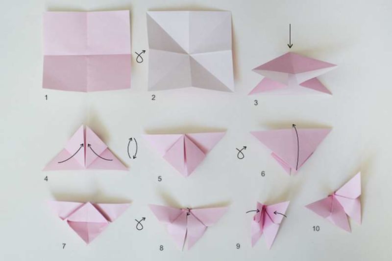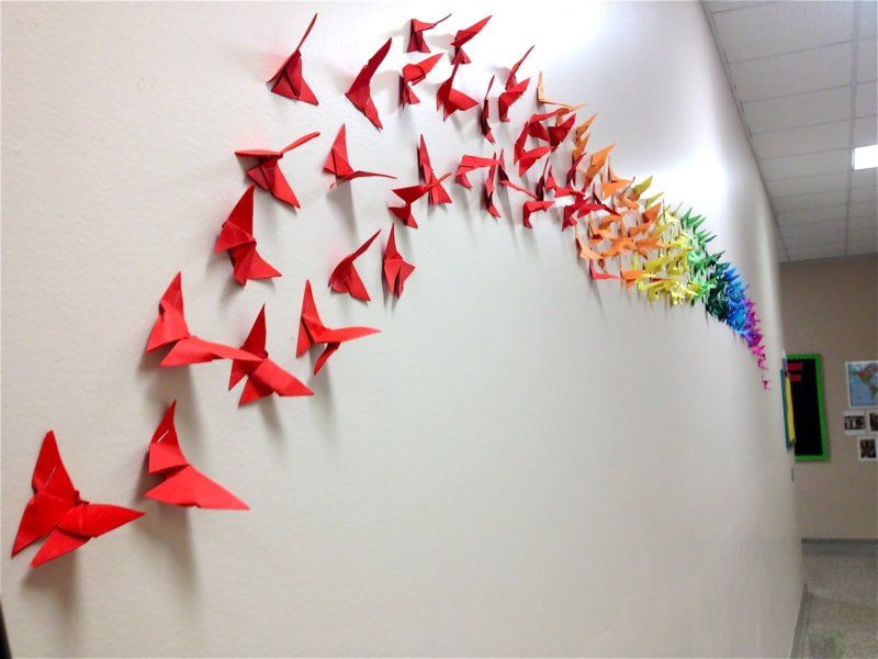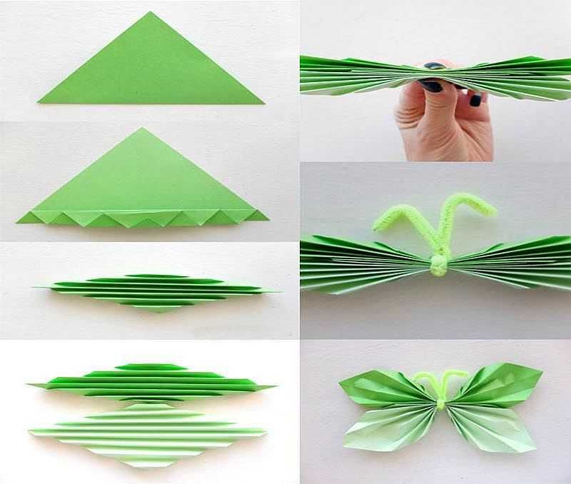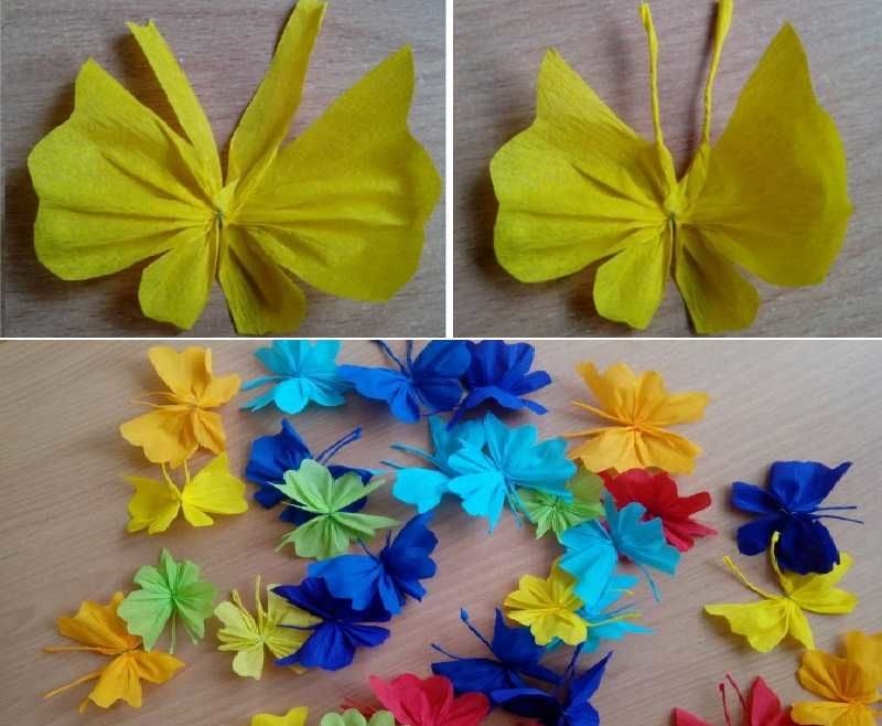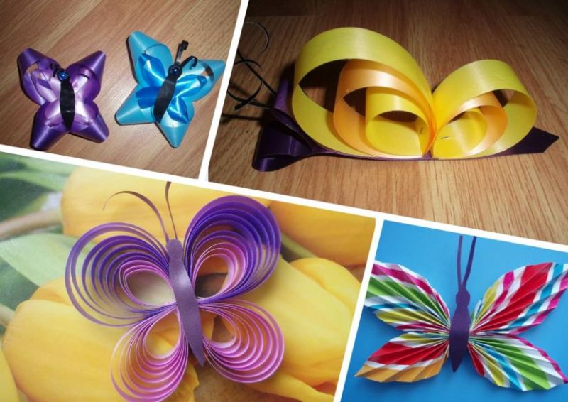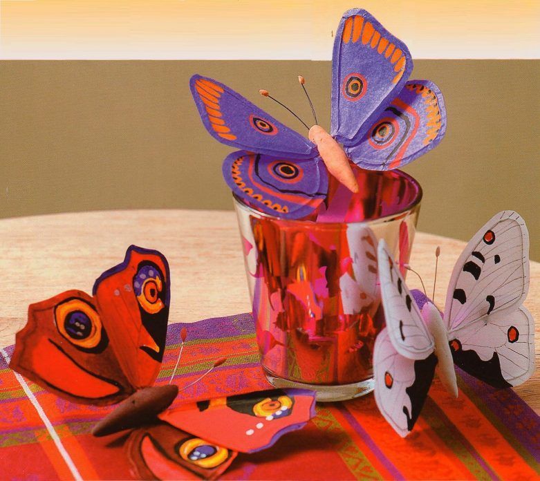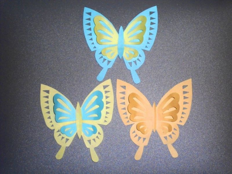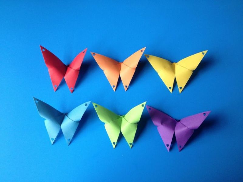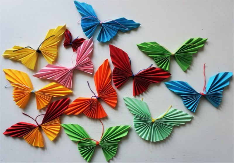 Пеперудите са пъстри. Те могат да бъдат сгънати като хармоника или да работят с цветна хартия.