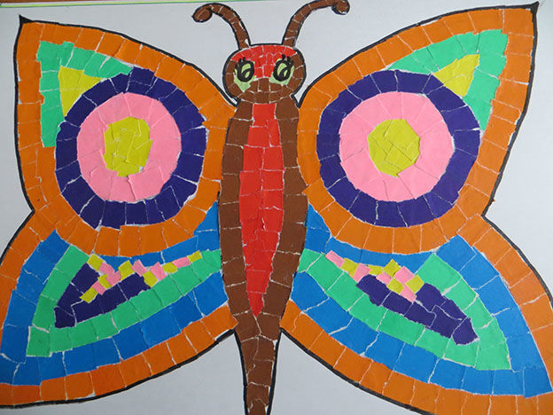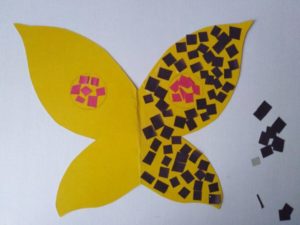 В резултат на това занимание детето решава да избере цветовата гама, в която да апликира пеперуда от цветна хартия.