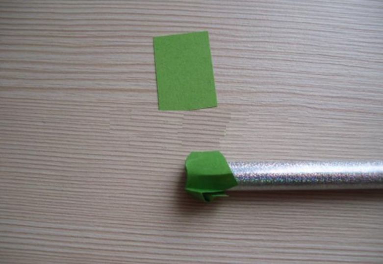 - Поставете пръчка в средата и намачкайте квадрата. След това го завъртете между пръстите си, докато се образува тръбичка.