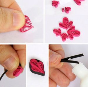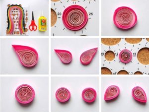 - С помощта на молив ги навийте на малки "рулца". Краищата на лентите се залепват с лепило.