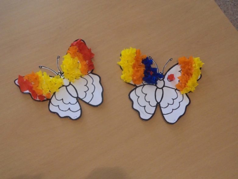 В тази дейност децата могат да бъдат насърчени да използват въображението си, за да назоват всички материали, които могат да се използват за направата на пеперуда.