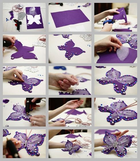 Апликиране на пеперуда от ръчно изработени материали