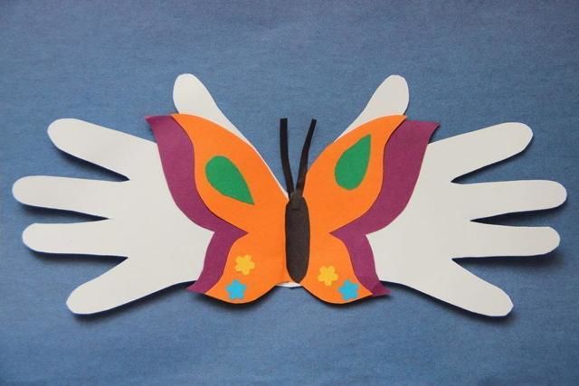 Апликиране на пеперуда от дланите на ръцете