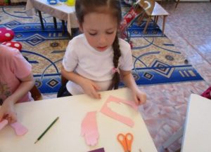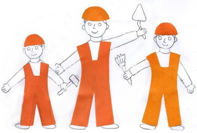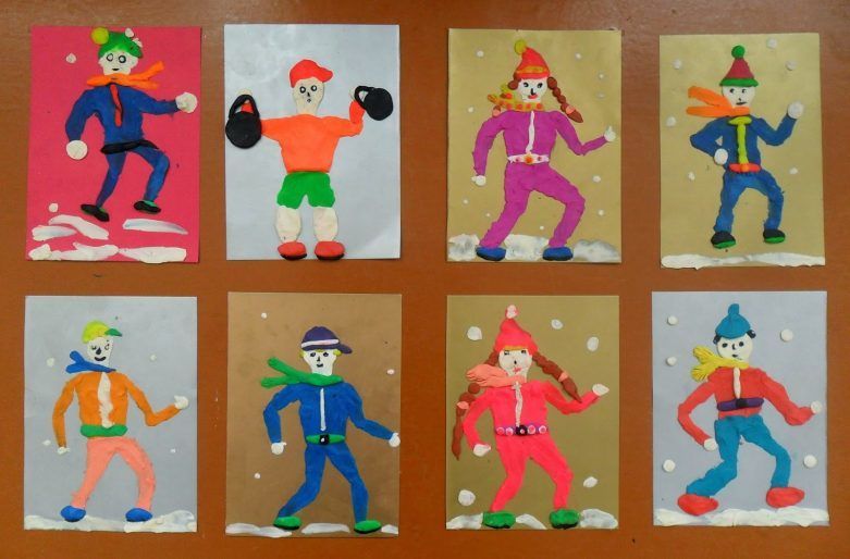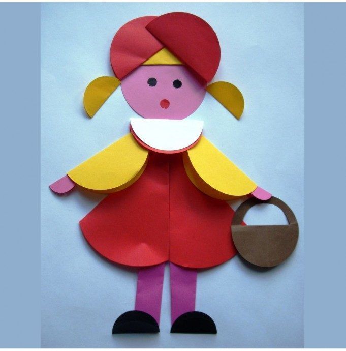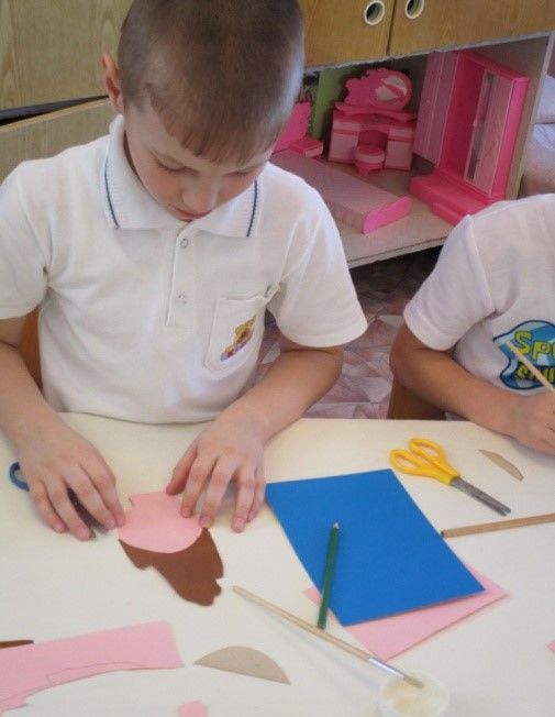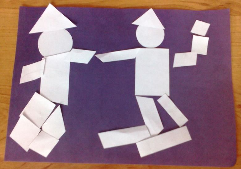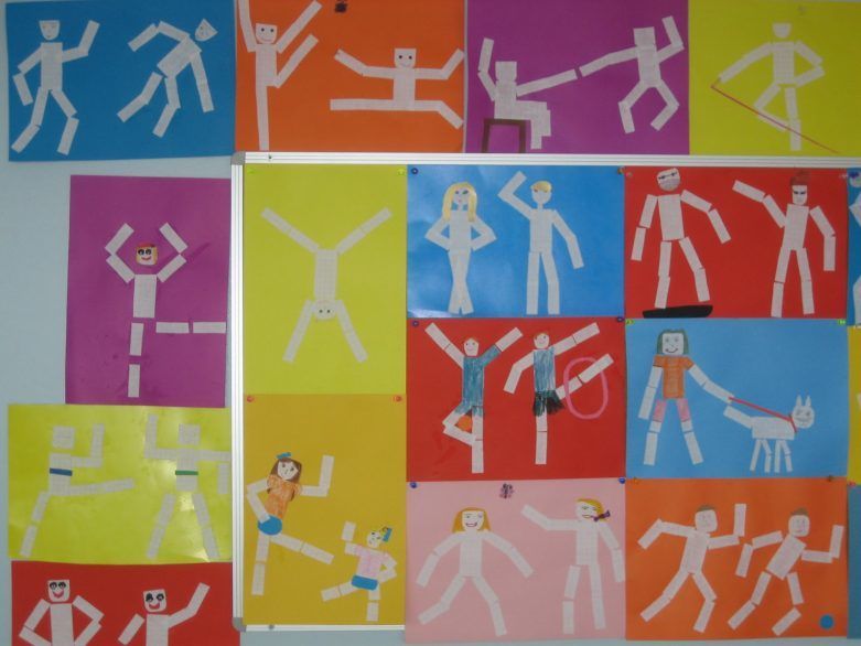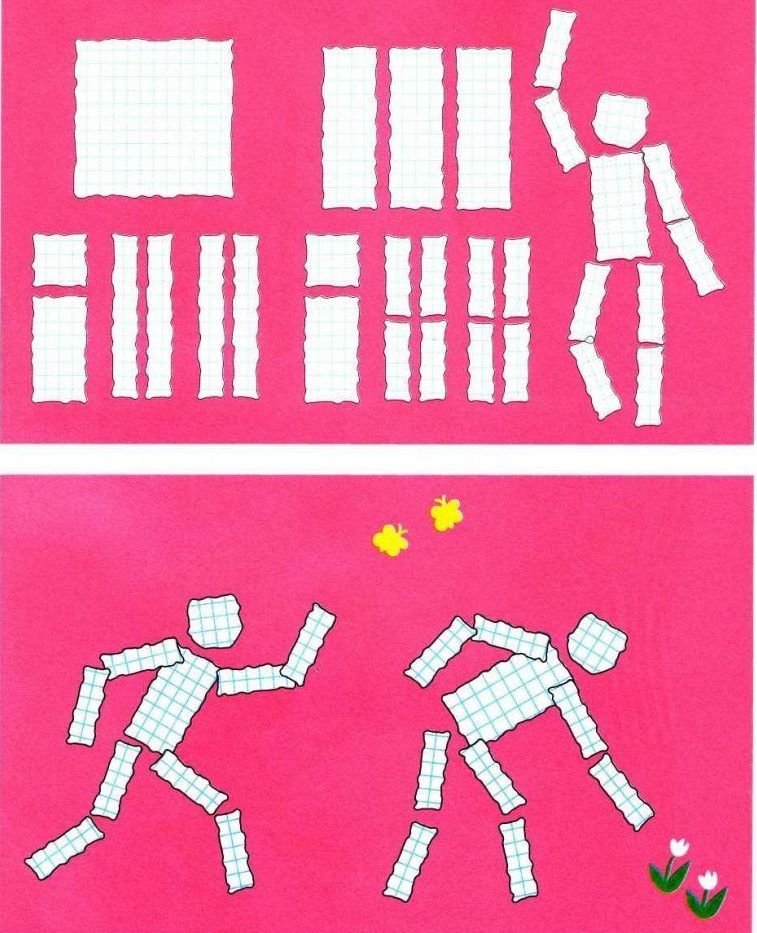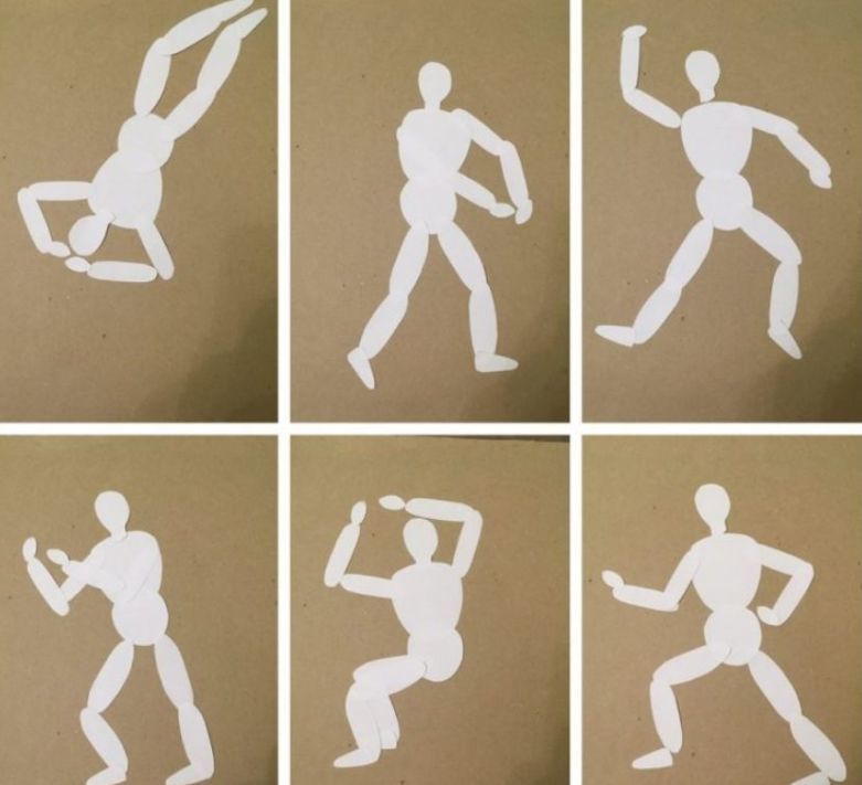 На детето ще му бъде трудно да заеме правилна поза от първия път и да избере ъглите за сгъване на крайниците. Задачата на родителите е да покажат как да направят апликацията реалистична, като покажат истински човек в определена поза.