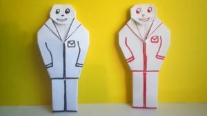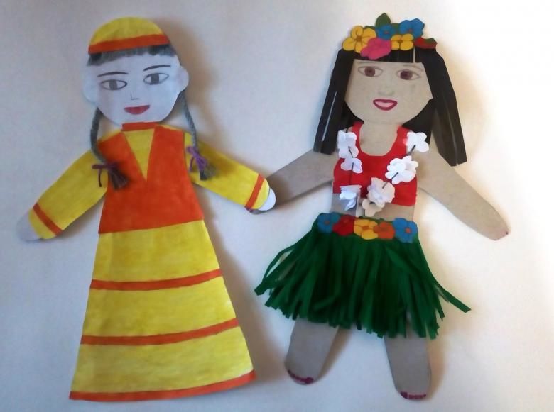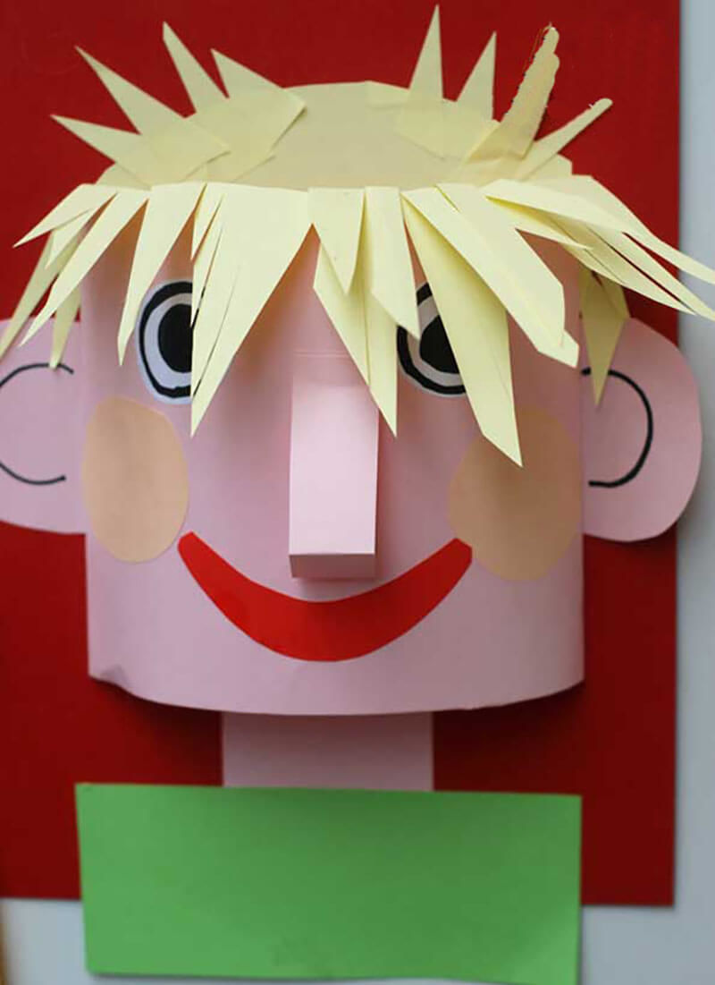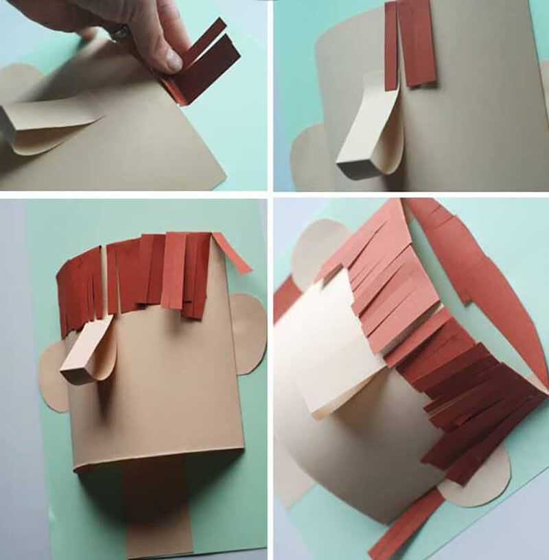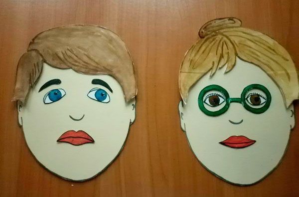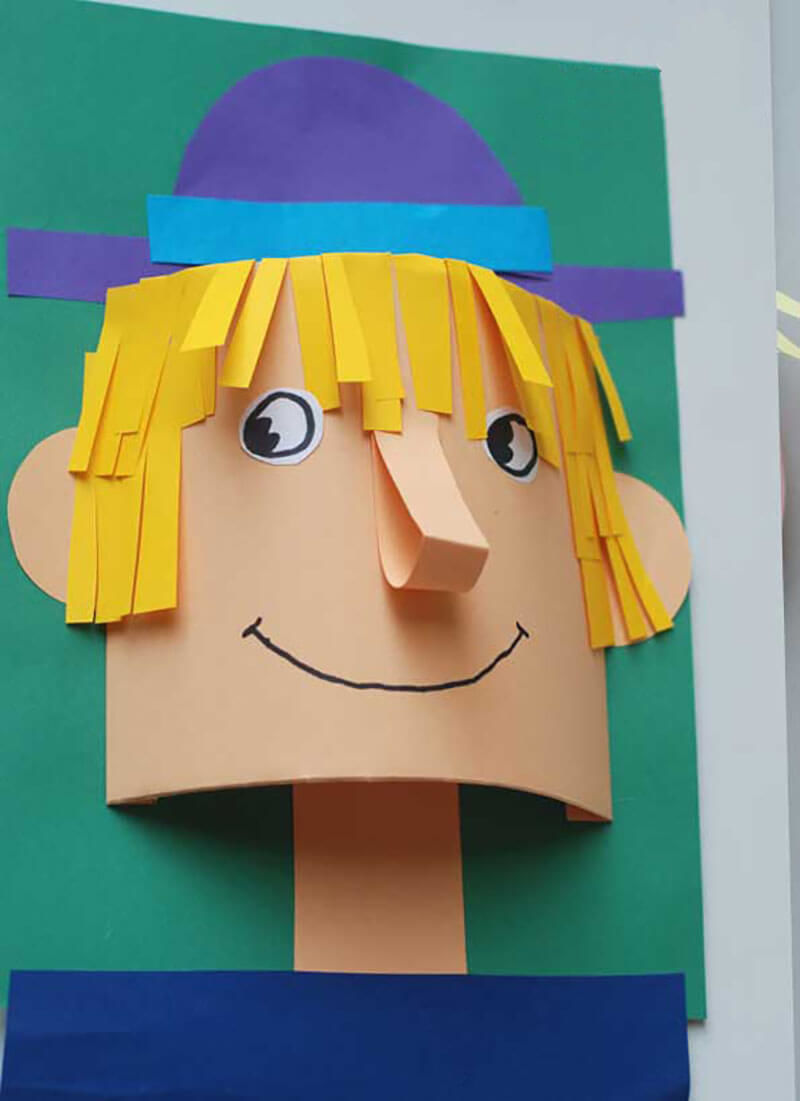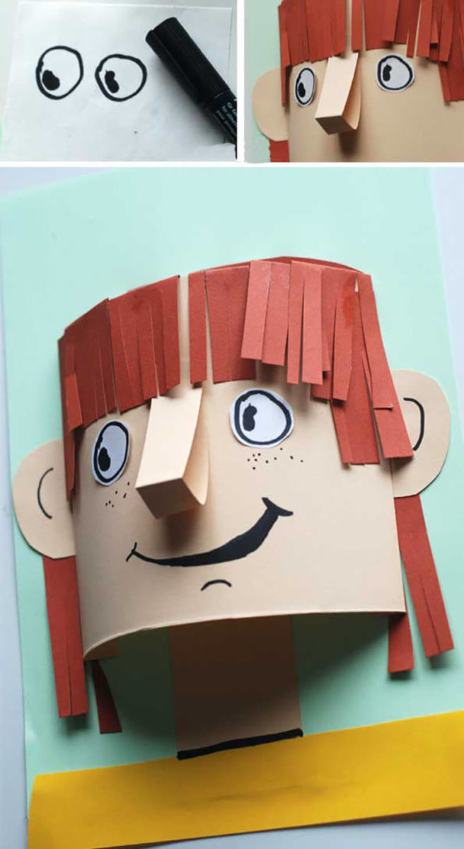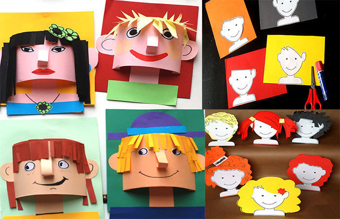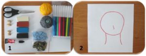 За основа се използва обикновен лист хартия А4, цветна хартия или картон. Върху него се рисува овалът на лицето и се залепват очите.