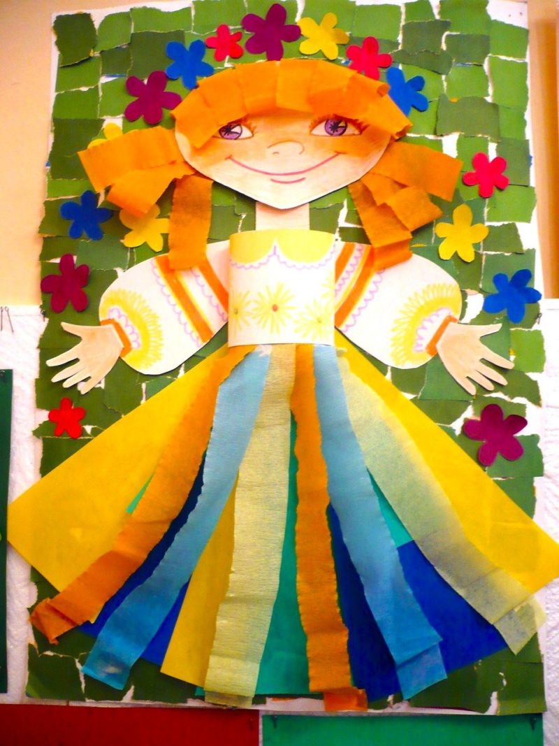 Апликирането на човешка цветна хартия също така ви учи да различавате цветовете и да запомняте имената им. Това е така, защото децата запомнят по-добре информацията, ако тя е представена по интересен начин. Казвайки всеки цвят в процеса на сглобяване на фигурата, децата са отлични запаметяващи.