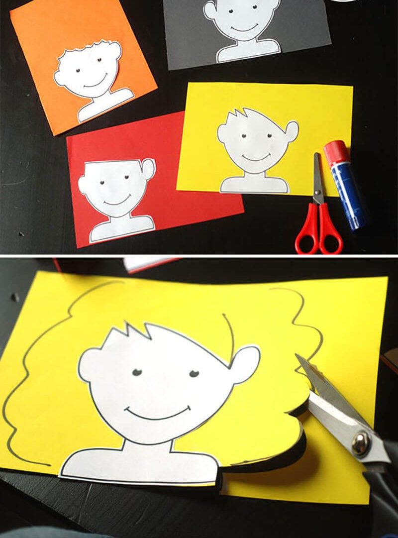 Може да се използва и тънък цветен картон. Благодарение на шаблона не е необходимо детето да създава само части от човешкото тяло.