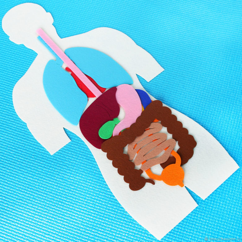 Ако желаете, този етап от обучението може да се усложни много, като за основа се използва не цялото човешко тяло, а само торсът. Вътрешните органи ще бъдат представени чрез геометрични фигури, като принципът на преподаване остава същият.