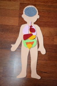 Този път обаче е необходимо да се нарисува правилното положение на органите върху лист хартия или картон и да се подпишат, така че детето да има отправна точка за първи път.