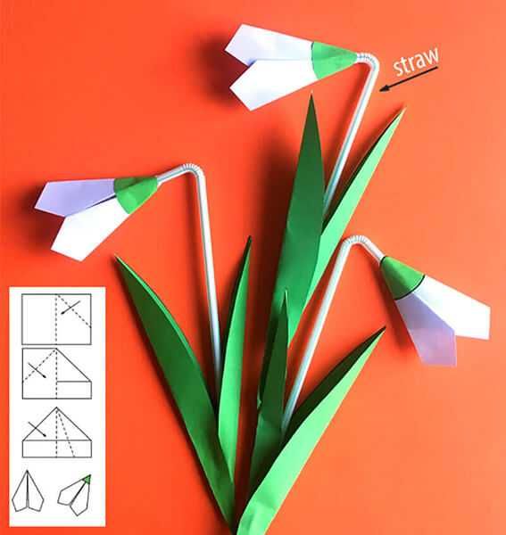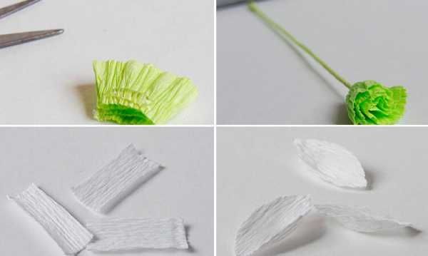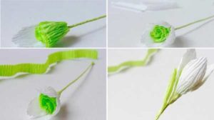 - Стъблата се залепват към основата, а към всяко стъбло се залепват по два чашелистчета и два цвята.