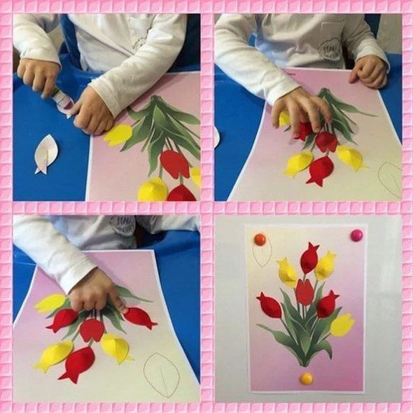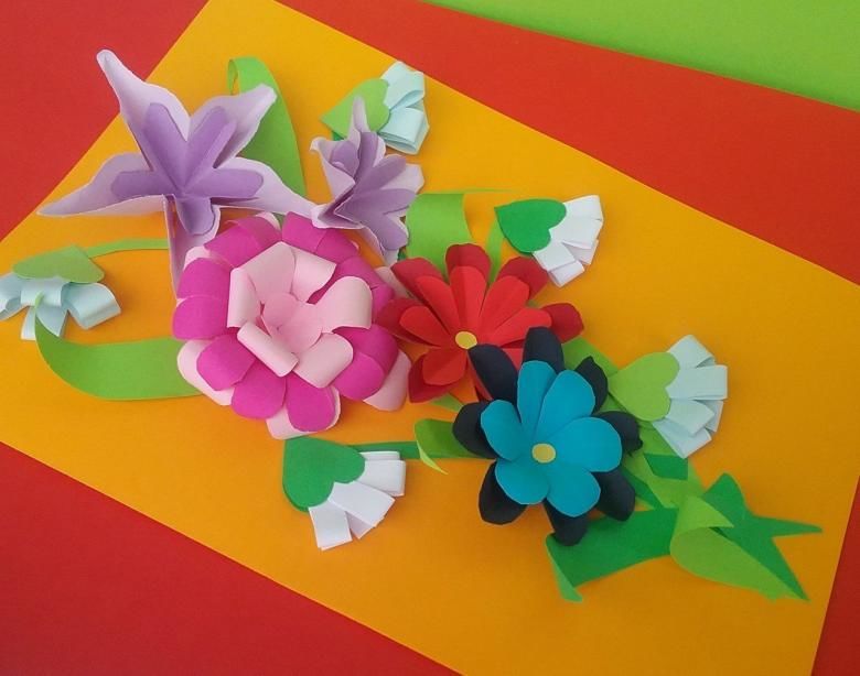 Апликирането на цветя от цветна хартия е един от най-простите варианти за занаяти, които могат да се правят заедно с децата. Основните материали, от които ще се нуждаете за работата, са лист картон, хартия в различни цветове, ножица и лепило ПВА.