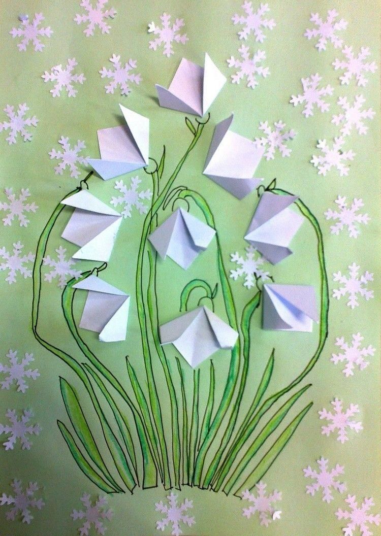 Направете композиция със снежинки от цветна хартия. Това ще отнеме известно време и усилия. Резултатът със сигурност ще бъде впечатляващ.