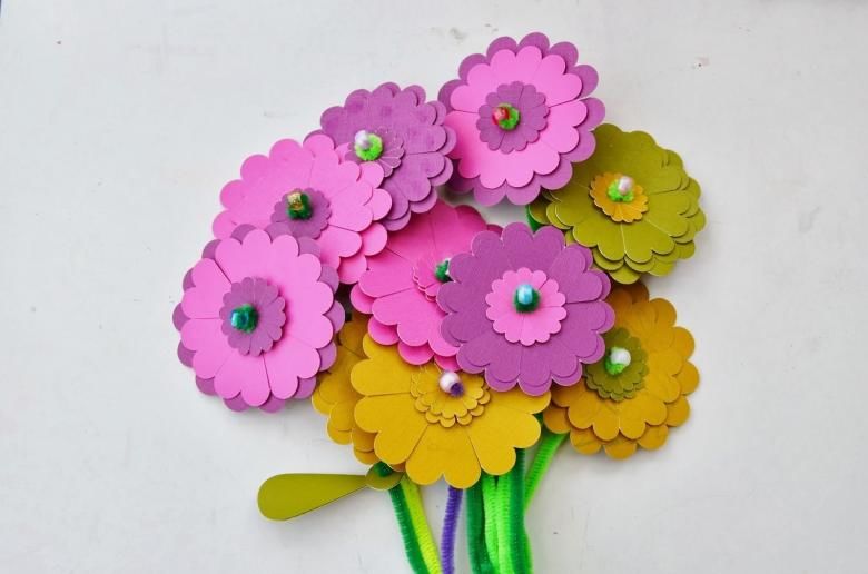 Нека направим хартиена ваза, пълна с пухкави цветя: