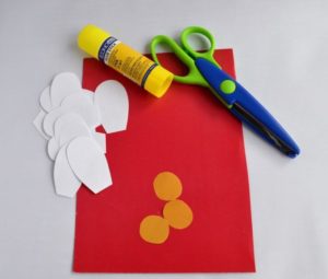 - Изрежете няколко венчелистчета с еднаква форма, две листа, сърце и стъбло.