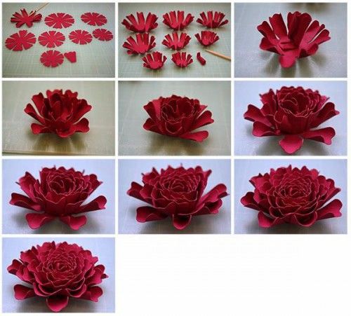 - Моделите могат да се застъпят, за да се получи цвете от хавлиен плат.