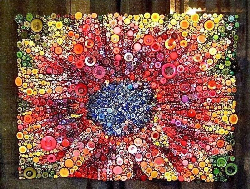 - Върху картонената основа се очертава пръстен от лепило. Венчелистчетата и сърцевината са залепени за него.