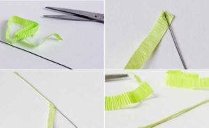 - Лентите се изрязват от декоративна хартия. Ширината на лентите определя дължината на венчелистчетата.