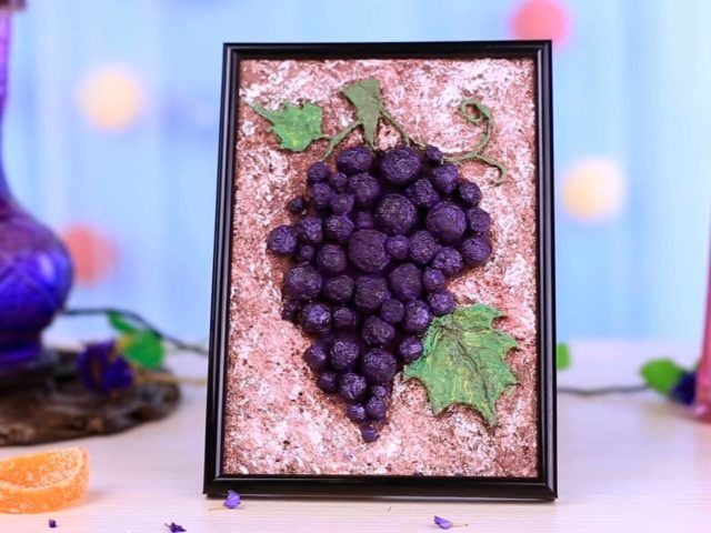 Когато залепвате зелените и сините плодове, редувайте ги към основата. По този начин се получава доста оригинално и цветно клонче грозде.