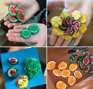 - Апликации от пластилин. За разнообразие можете да апликирате с пластилин. За целта върху картона се рисуват фигури на плодове, които се запълват с пластилин точно по линиите. Резултатът е ярък и оригинален занаятчийски продукт.