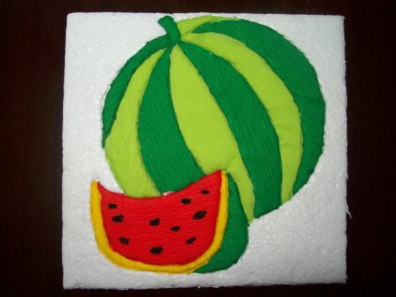 Децата от средната класа могат лесно да направят колаж под формата на този плод. Изработва се по същия начин като предишната.