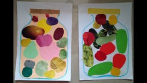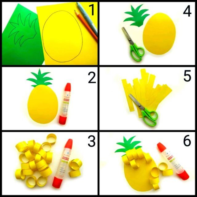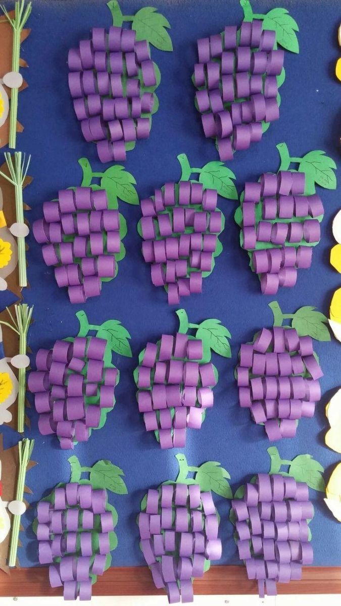 За да затвърдите тази техника на апликиране, можете да започнете с изработването на клонче грозде заедно с децата, а след това да ги помолите сами да направят ананаса.