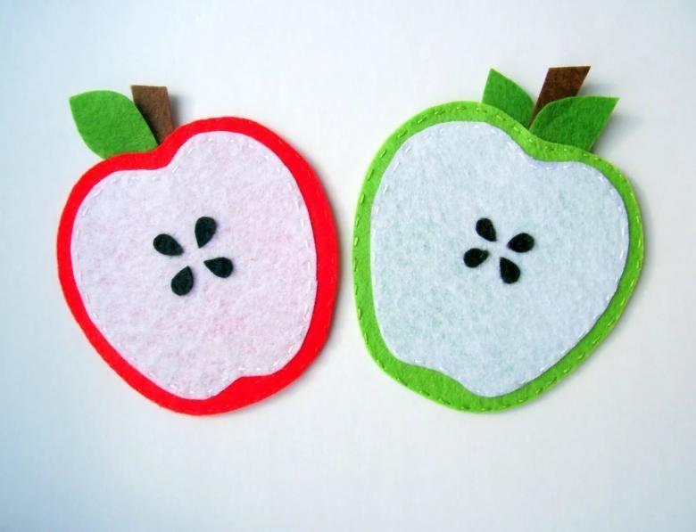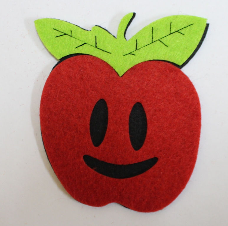 За да направите ябълката още по-подобна на истинска, можете да използвате маркер (флумастер), за да нарисувате семките върху бежовия кръг. Всички занаяти са готови.