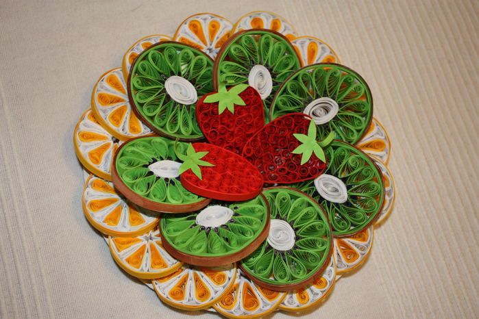 За да си направите красива и оригинална ваза за плодове, си струва да ги разнообразите и да направите възможно най-много различни елементи. Вазите трябва да се залепят само към външния ръб на хартиената основа във формата на ваза, която също трябва да се подготви предварително - да се нарисува и изреже.