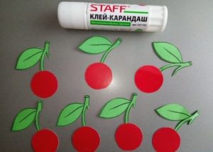 - Залепете черешовите кръгчета така, че да са в контакт с листата.