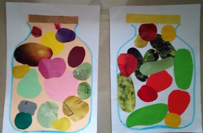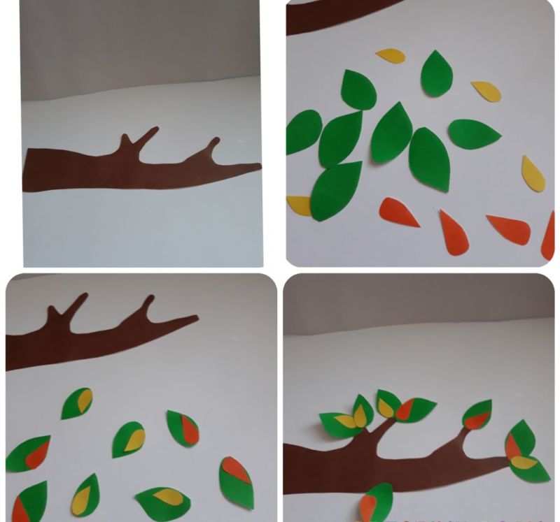 Творческа композиция от всякакви апликации. След като детето усвои тези техники, може да се премине към по-сложни, но и по-оригинални композиции.