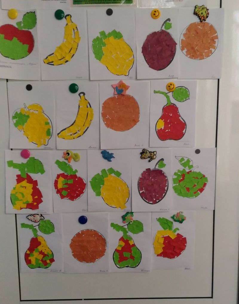За креативните начинаещи в предучилищна възраст си струва да започнете обучението с по-прости видове приложения, с познати плодове и зеленчуци. За работа е по-добре да вземете по-прости шаблони.