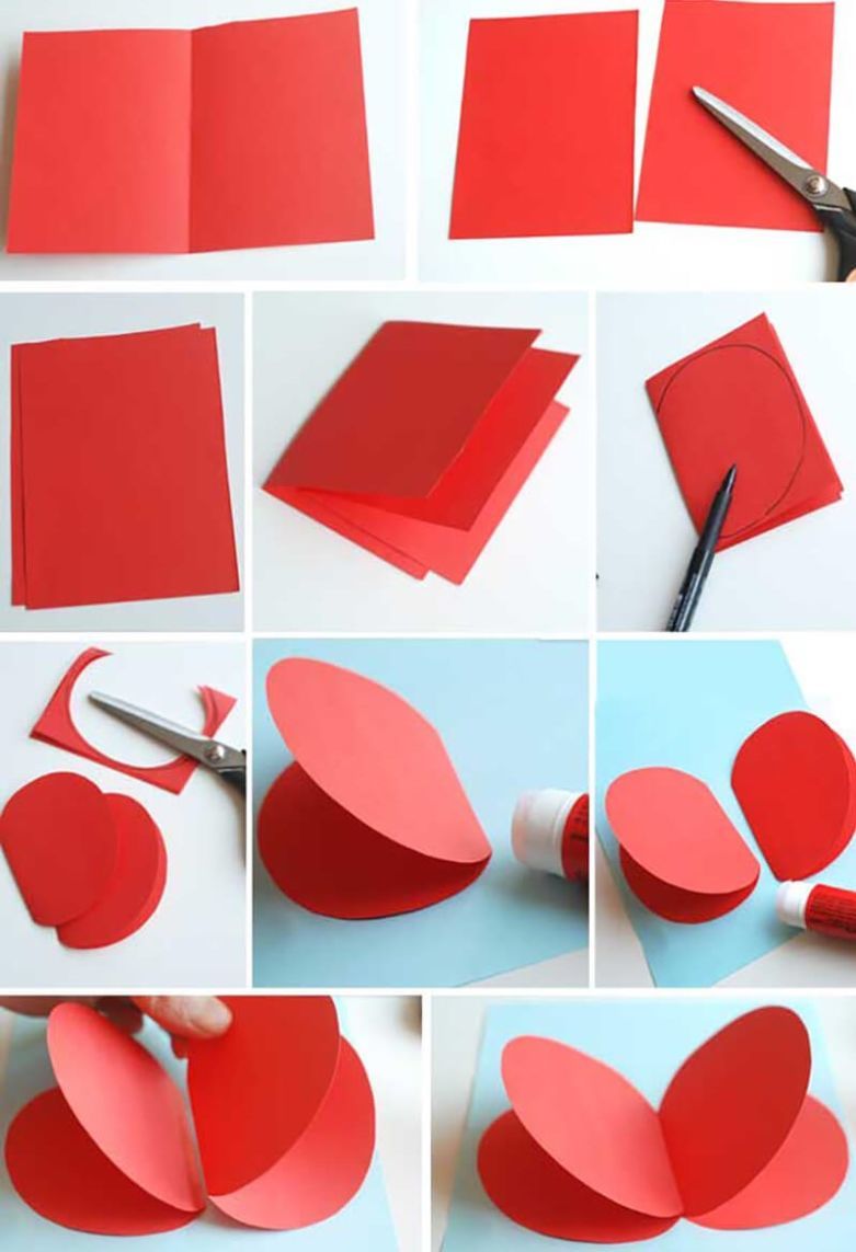 - Вземете два червени листа и ги сгънете наполовина.