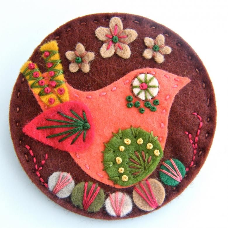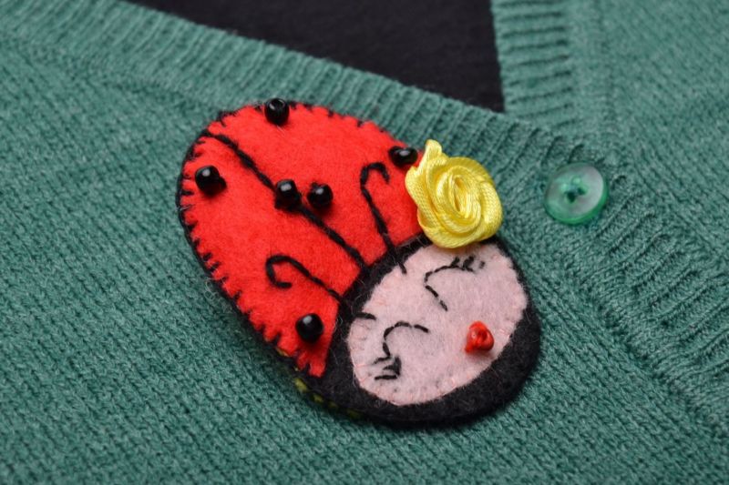 - Популярна тема за брошка от филц е божата птичка.