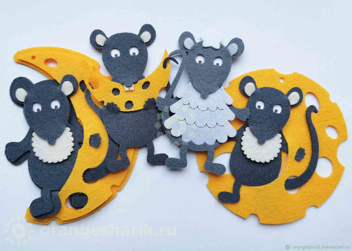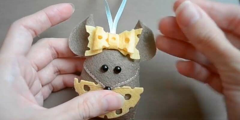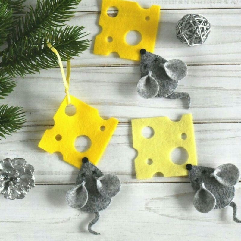 Мишката и сиренето - украшение за коледна елха или декорация за детската стая. Ако искате, можете да направите такива мишки в 3-4 различни цвята.