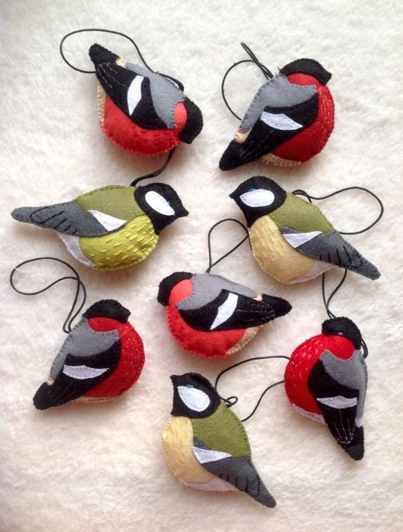 За да си направите обемна птица, трябва да направите две еднакви парчета с помощта на шаблон и да ги съшиете. След като свършите част от работата, натъпчете малко памук в тялото, за да го издуете.
