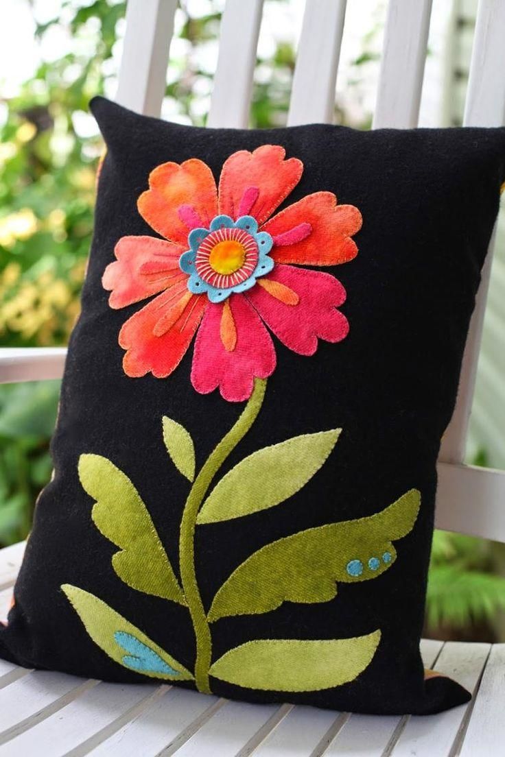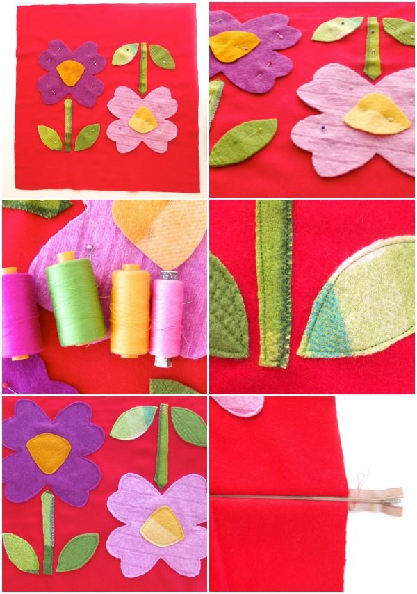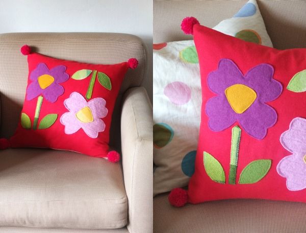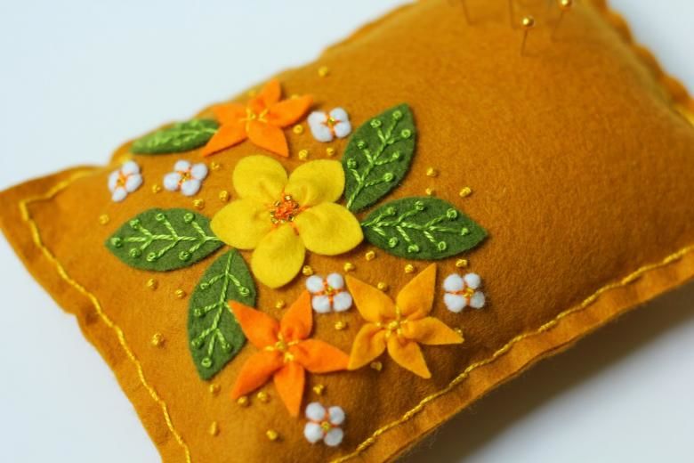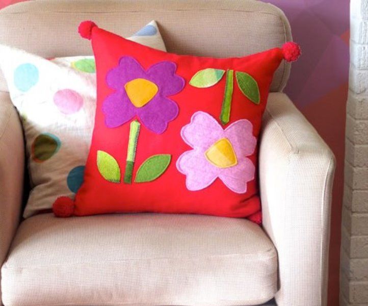 Цветята от филц, които украсяват възглавницата, могат да бъдат подарени на мама или баба за рожден ден.