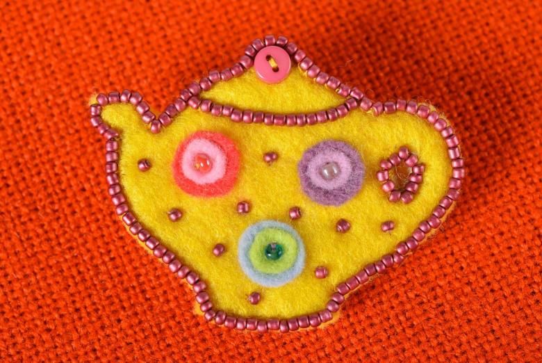 - Брошката от филц може да бъде изцяло бродирана с мъниста, цветни мъниста и камъни.
