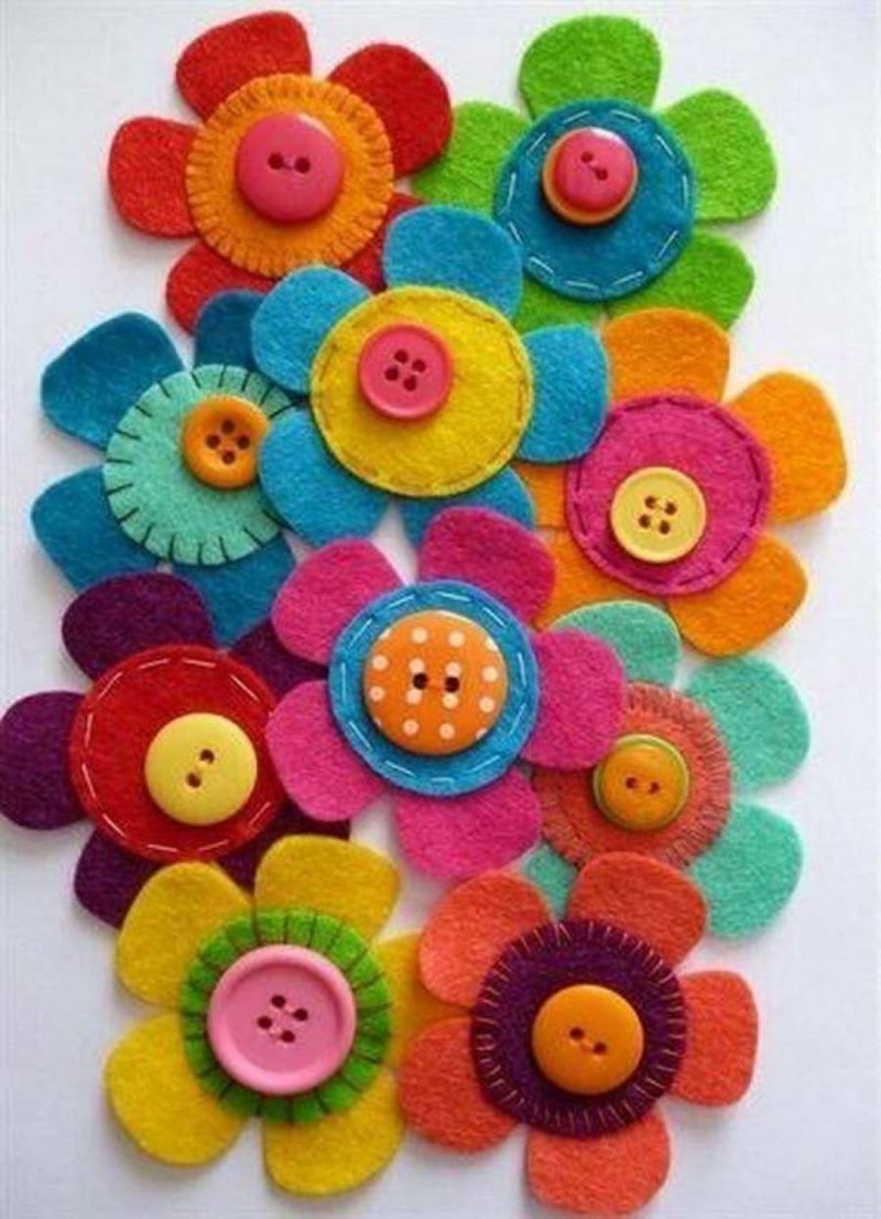 "Цветя от филц" е проста апликация, в която децата могат да участват, а възрастните - да допринесат с каквото могат. Заслужава си да решите дали това е редовен учебен процес, или пък цветна декорация за интериора. Цветна аранжировка може да се рамкира и да се постави на рафт на компютърното бюро.