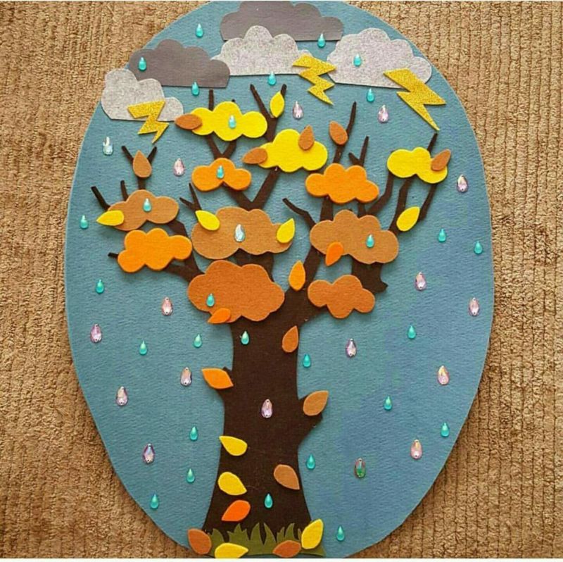 - Най-простият пример е обемен облак от филц с дъждовни капки (блестящи мъниста).