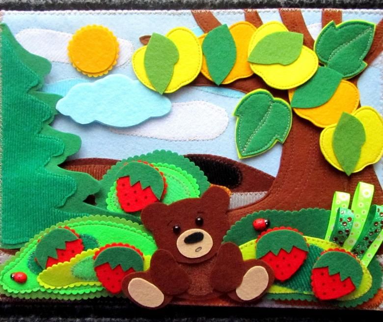 Книгата за апликации от филц е трудоемък аксесоар, но може да се използва всякакво съдържание. Това може да бъде зоологическа градина, в която всяко животно се пуска в родната му среда.