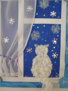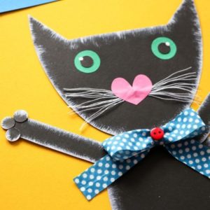 - мустаците са направени от лентички хартия, а за украса на врата се използва панделка;