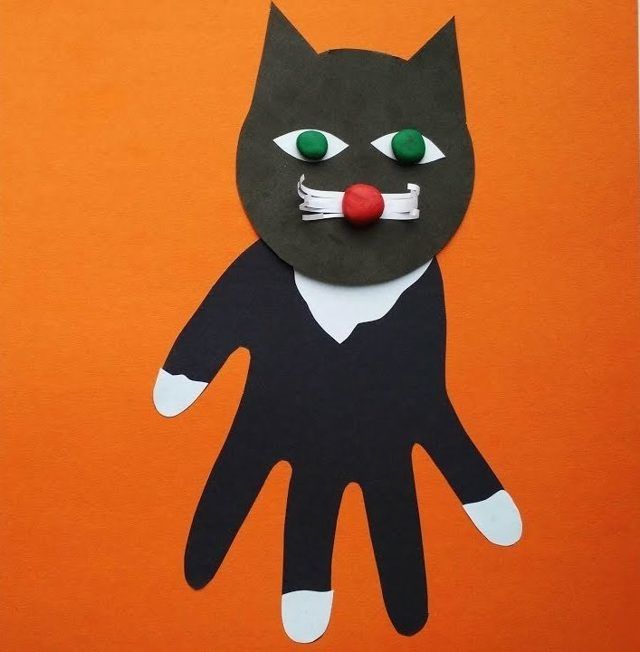 Създаването на коте от дланта на ръката ви е много лесен вариант за най-малките. Няма да ви трябват много материали, за да създадете тази рисунка, просто имайте лепило и ножица, картон и цветна хартия.