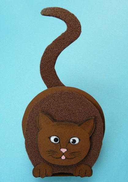 - За да постигнете триизмерен ефект, изрежете предната част на котката от едно парче картон, а задната - от друго;
