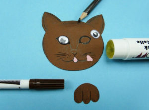 - Използвайте флумастери, за да направите муцуна, или цветна хартия, за да направите очи и мустаци.
