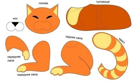 Друг вариант за създаване на котка от плат включва първо изрязване на части от плат, след това зашиването им и пълненето им с някой от следните материали: вълна, синтепон, дървени стърготини. Можете да шиете такава играчка като машина, която е равномерен бод, и спретнато на ръка.